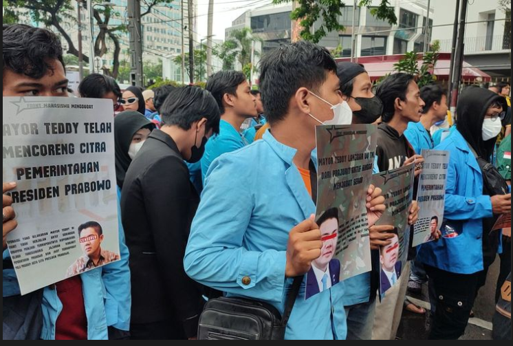 Mahasiswa Membawa Poster Foto Mayor Teddy Dalam Aksi Demo ‘Indonesia Gelap’
